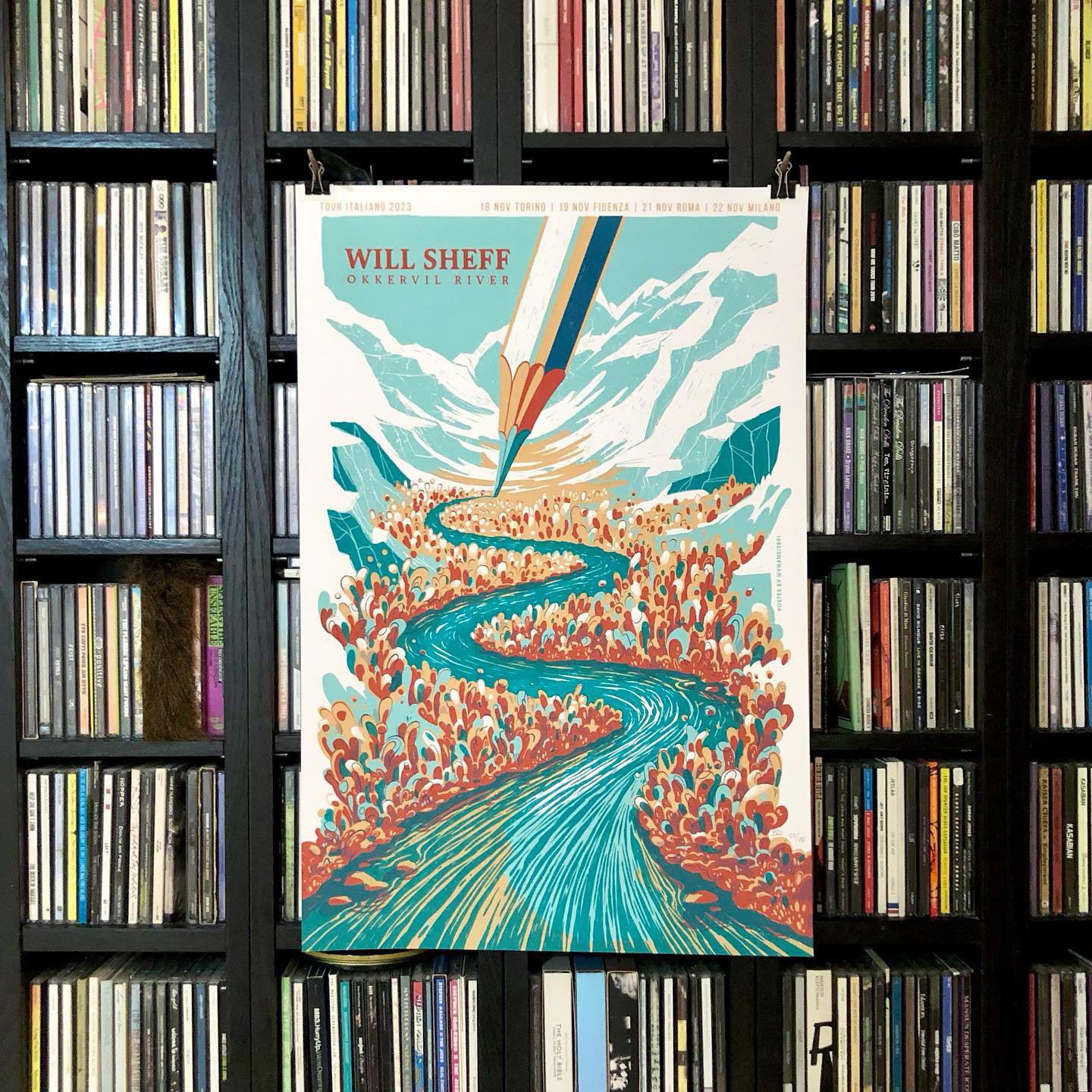 Illustration and screen print of the official gig poster for Will Sheff (Okkervil River) live in Italy.