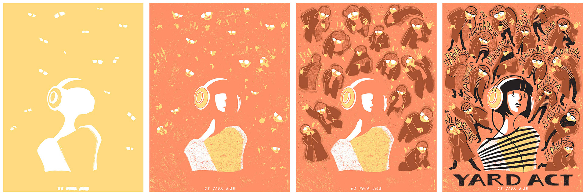 Design and illustration of the official Yard Act gig poster, US tour 2023.