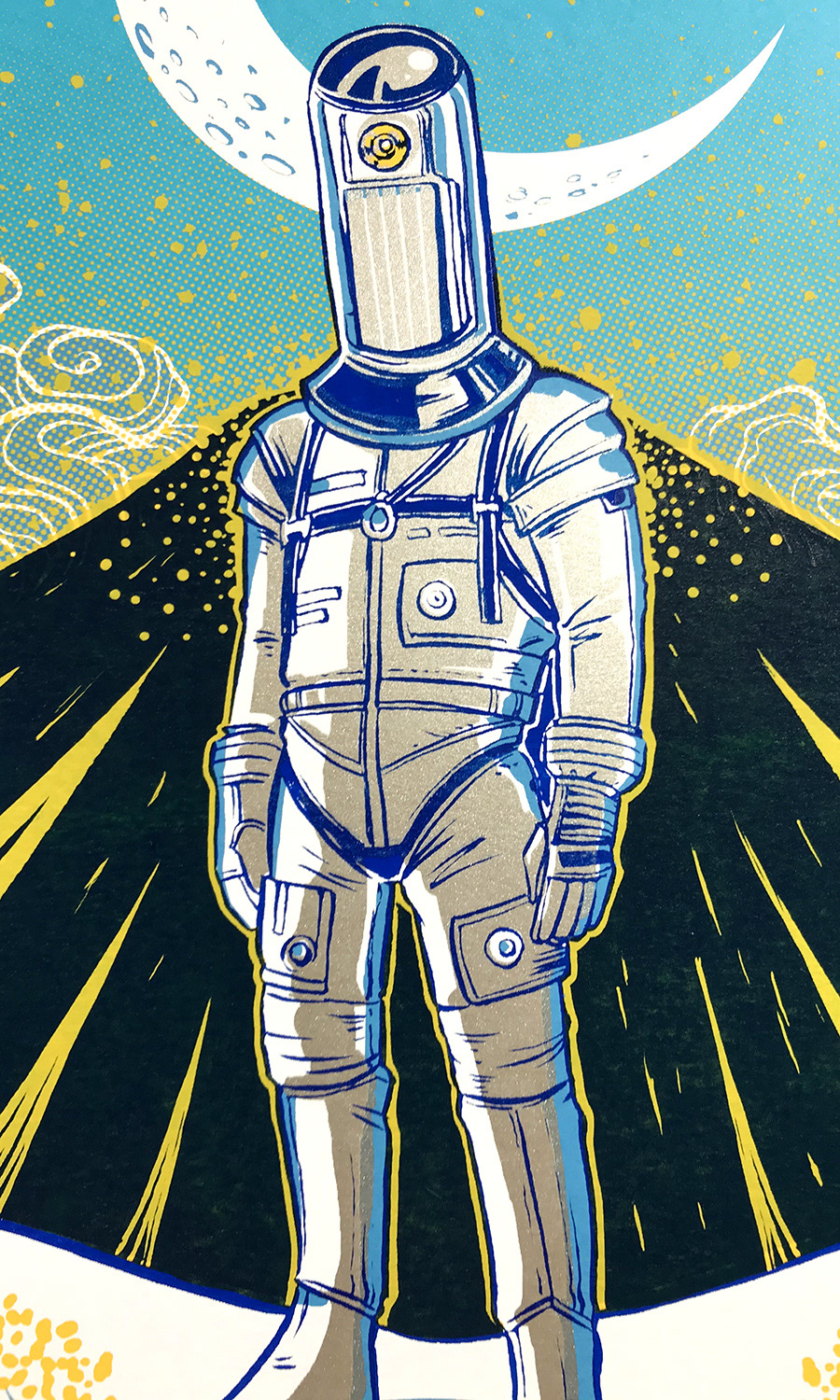 Postcard and main stage with the "Cyclops Astronaut":